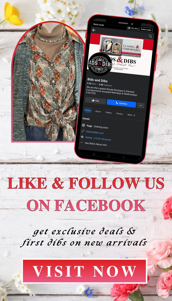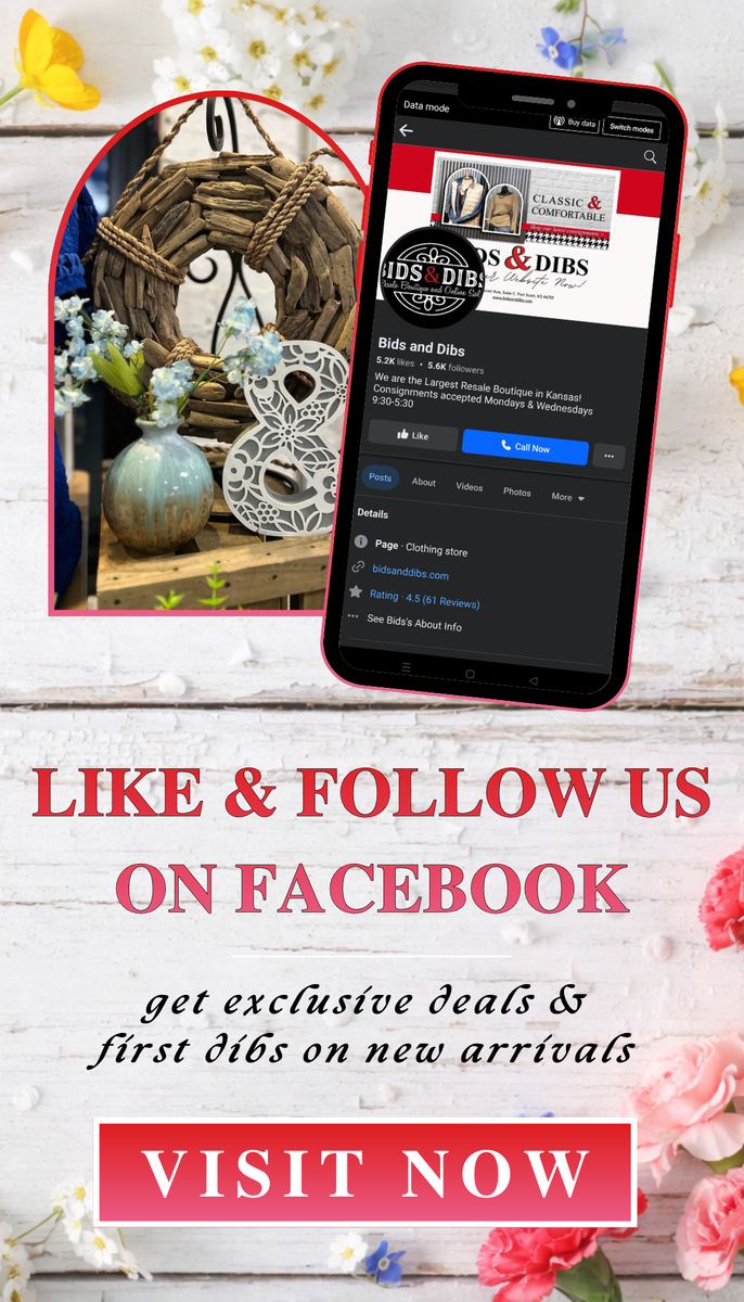 Bids & Dibs is always changing the the clothing & decor. Everyday is different with the displays & well organized. I’ve never been disappointed or left empty handed. Easy to find & plenty of parking!